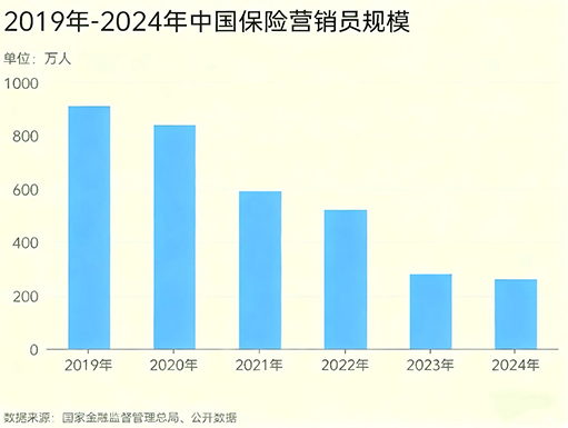 这一缩影背后,是中国保险代理人队伍正在经历的一场脱胎换骨式的深度革命。根据中国保险行业协会数据,截至2024年末,我国人身险公司保险营销员人数已从2019年历史峰值的912万人降至264万人,五年间锐减超七成。这场被业内称为“清虚提质”的供给侧改革,正推动中国保险业完成从规模扩张到质量效益的历史性跨越。