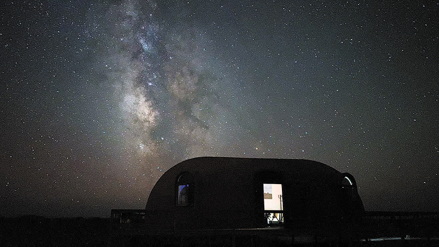 As night fell, stars appeared across the sky, with the Milky Way forming a clear, sweeping arc. The desert was quiet, interrupted only by the crunch of sand underfoot and the two friendly cats — pets of the park staff — that followed us, adding a small, unexpected charm to the stillness.
