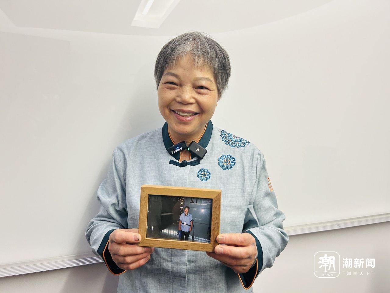 身穿蓝色工作服的洪阿姨,依然笑得真诚又明亮。