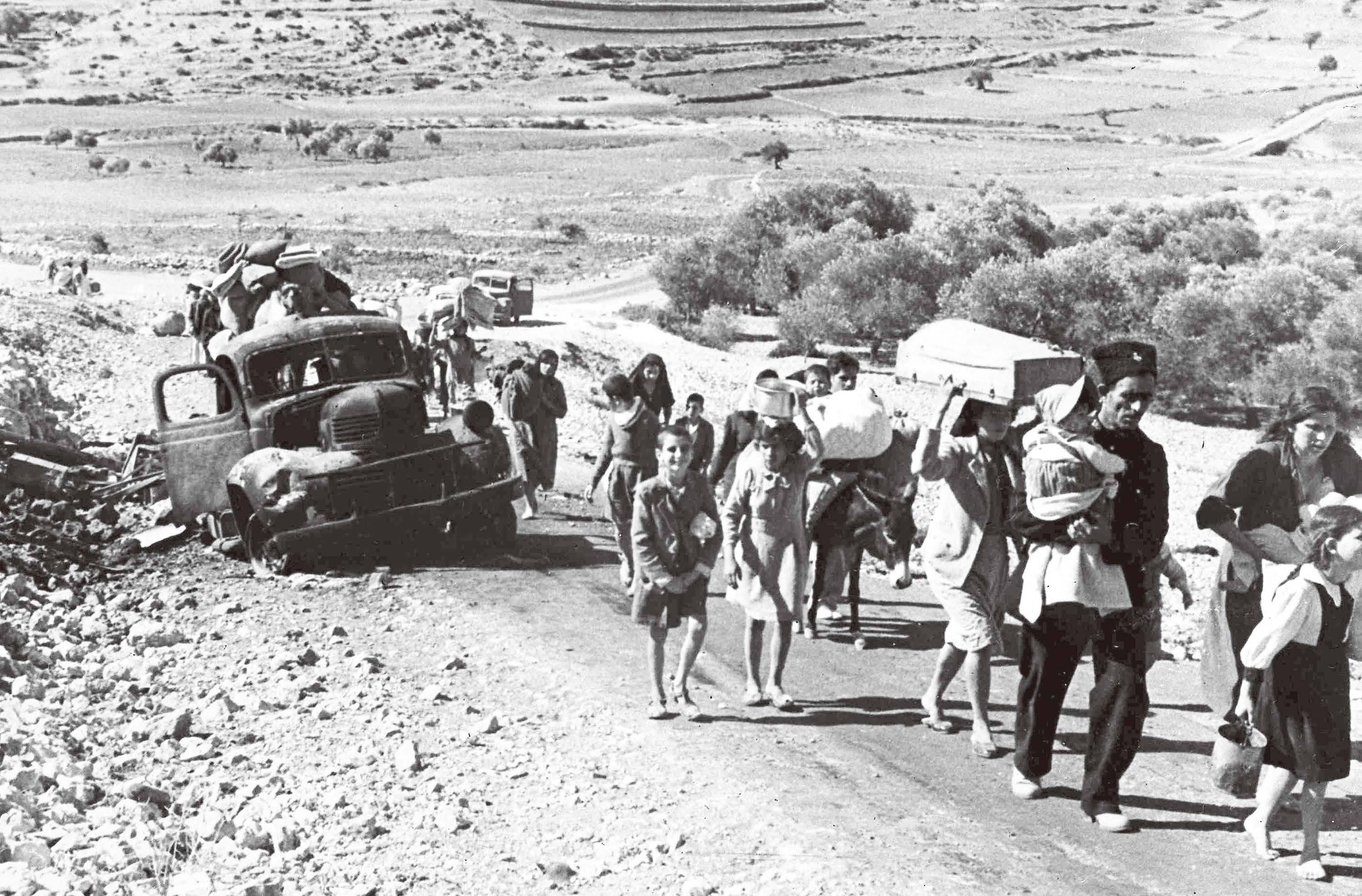 当地时间1948年11月9日,耶路撒冷,一群阿拉伯难民带着他们的财物走在逃难的路上。(视觉中国)