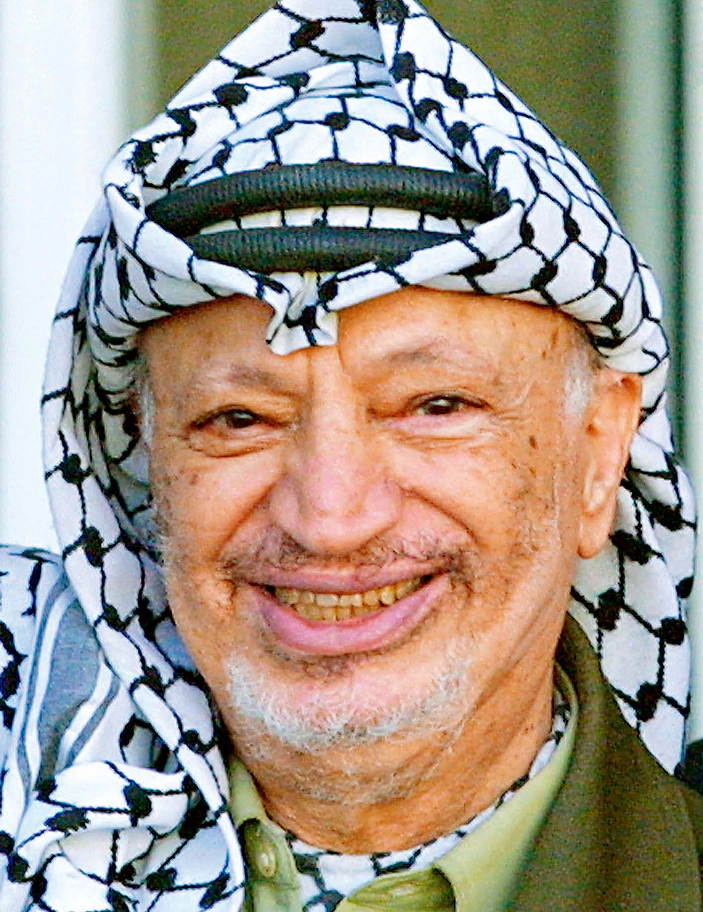 他身高不足170厘米,络腮胡子经常好多天不刮,还有着厚厚的、引人注目的下嘴唇。他的绿色制服被熨得笔挺,头上总围着黑白格纹的头巾——这种头巾已经成为巴勒斯坦的象征。