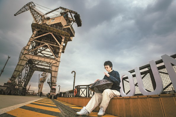 演出结束后,艺术家漫步至黄浦江边,在一块标有“YOUNG”字样的艺术装置前即兴演奏。这块既是“杨浦”谐音又寓意“年轻”的标识,恰如“扶青计划”扶持艺术新锐的生动注脚。