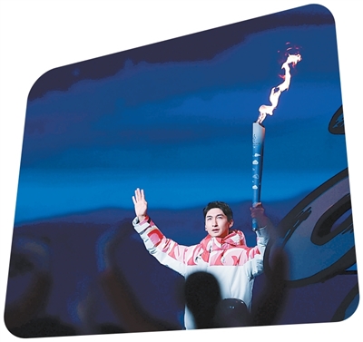武大靖在第十四届全国冬季运动会开幕式上传递火炬。新华社记者 黄伟摄