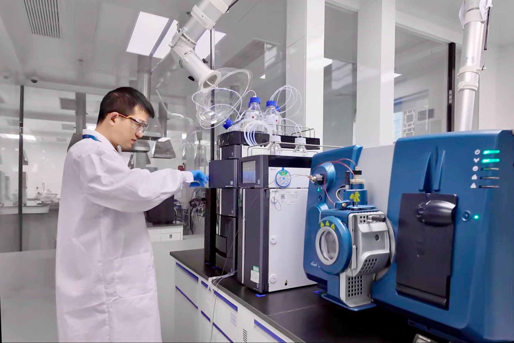 水井坊邛崃全产业链基地内,检验人员正在对酒样进行检测。王聪摄