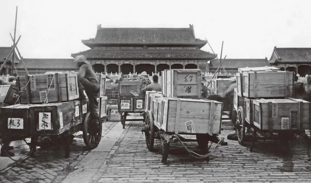 1933年2月5日,夜色沉沉,寒风凛冽。紫禁城太和门广场上,2000余只木箱静静陈列着,里面装的都是故宫珍藏的古物,有商周青铜器,有唐宋书画,也有明清瓷器等。很快,这批木箱被装上木板车,在夜色掩护下,车队出午门,穿端门、天安门,运抵北平西站,分装18节车厢。翌日清晨,火车启动,驶出北平。此后10余年间,先后有5批故宫文物,共计1.3万多箱,辗转数万里迁徙,从殿宇楼阁搬进租界洋房,从现代库房移入山间洞穴、乡野祠堂,只为躲避一触即发的战火。