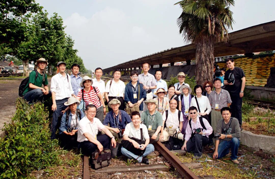 · 2010年,两岸故宫人员重走故宫文物南迁路,在南京浦口火车站合影。后排左五为郑欣淼。(受访者供图)