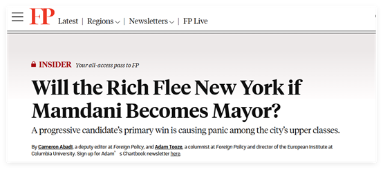 然而,在与美国《外交政策》杂志进行的一次访谈中,图兹也警告说,鉴于马姆达尼帮扶穷人的政策需要靠对富人加税来充裕公共资金,纽约市富人可能会以离开纽约市来要挟他,以此来搅黄他的计划。