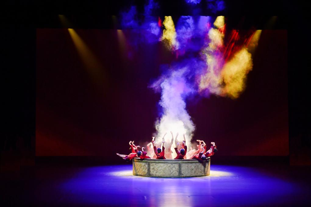 3分半钟的表演,她们围着一只巨大的“蒸笼”,如浪花一般起落、跳跃、舒展,用灵动的舞步演绎农家民俗场景。