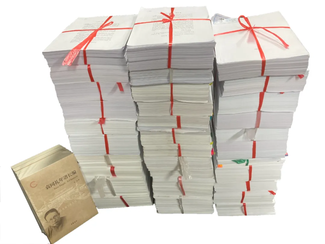 《袁同礼年谱长编》书影及编辑稿件。中华书局供图