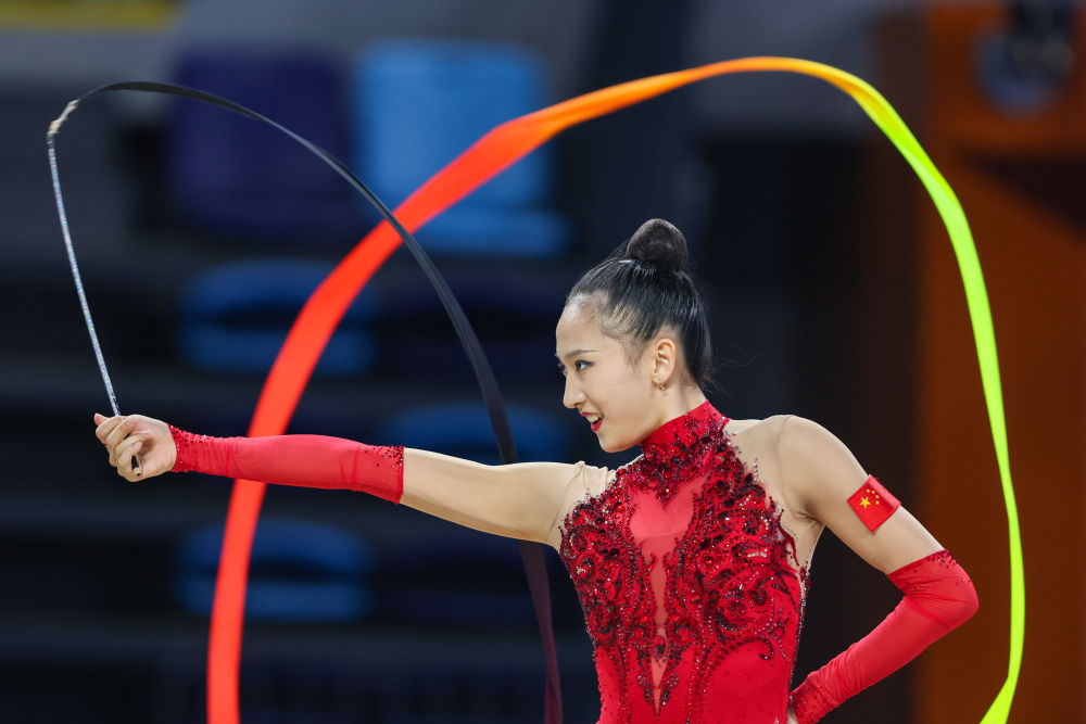 10日,第十五届全国运动会艺术体操个人全能决赛中,代表陕西队出战的王子露倾情绽放,如愿加冕。