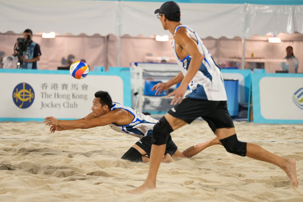 10日,第十五届全运会决出沙滩排球男子组金牌,江苏一队的吴佳欣/周朝威在金牌赛中2:0战胜辽宁一队的李焯新/薛涛,夺得冠军。