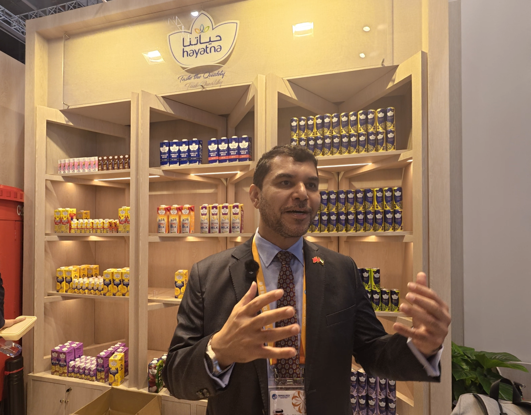 纳赛尔表示,此次参加进博会的阿联酋企业中,有一家“明星”牛奶企业:“这家企业的名字叫‘海雅特纳’(Hayatna),在阿拉伯语中,这个词意为生命。牛奶给了我们健康与活力,所以我们给企业起了这个名字。”