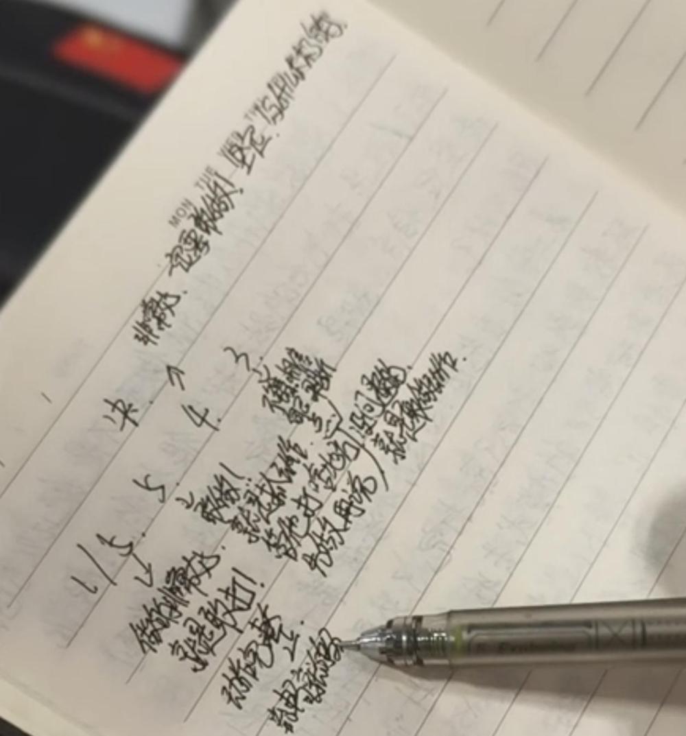 赛后,他打开了那本笔记。第一组5中,他写道:“做得非常好,就是敢打,动作完整流畅就够了。”第二组再次5中,他继续写:“敢做!就是抓动作,管它打啥地方,先做再说。”第三组4中,他仍然给自己“打鸡血”:“非常好!一定要敢做,没什么大不了的。”第四组打出3中,字迹略显潦草但依然是鼓励:“不错,相信自己,果断点。”