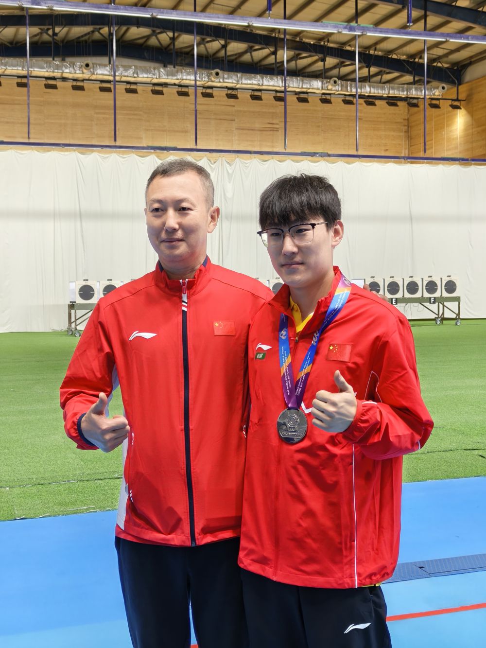 倪志欣2022年底才进入省队,这是他第一次参加国际大赛。他在此前的全运会上表现亮眼,不仅与奥运冠军李越宏一起获得了男子速射团体冠军,也为自己挣够了积分,拿到了世锦赛参赛资格。然后,决赛经验不多的他,就意外地闯入了世锦赛的决赛。