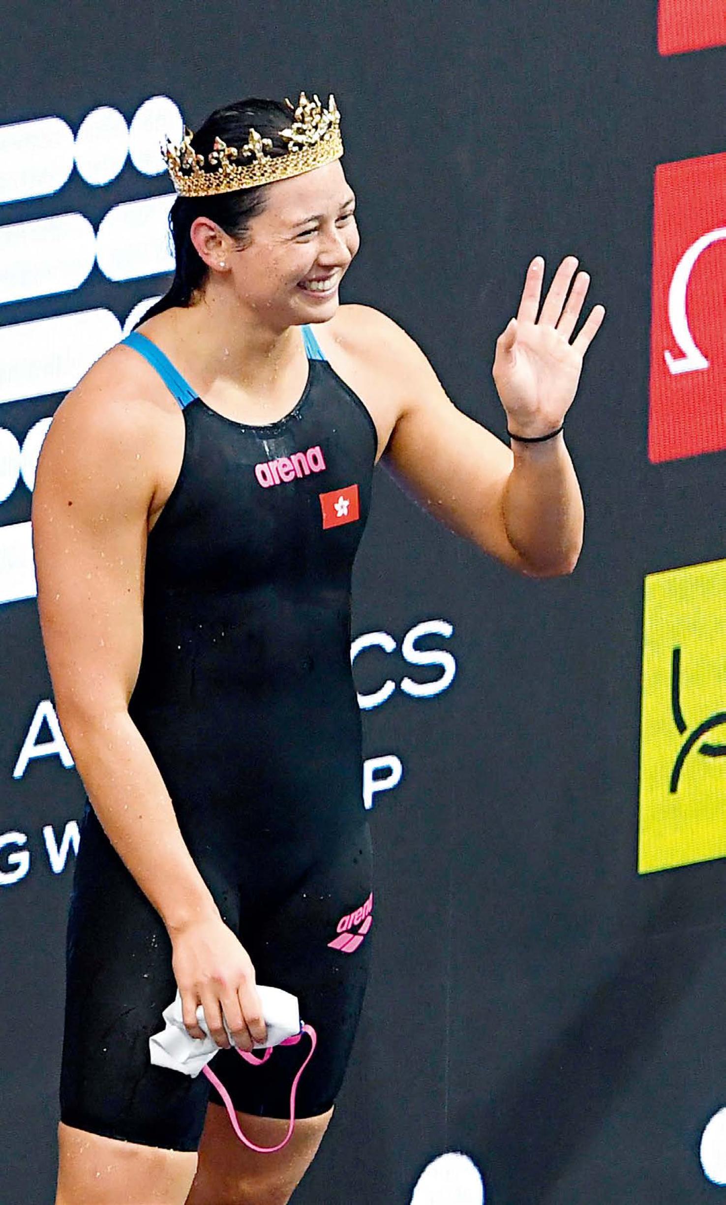 2024年11月1日,2024游泳世界杯新加坡站,何诗蓓摘得金牌后戴上“皇冠”。