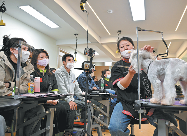 An instructor teaches trainees professional grooming skills at Lele Pet Grooming School in Anshan. HUA YUHAN/CHINA DAILY