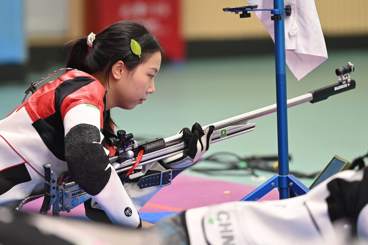 10月16日,浙江队选手王子菲在比赛中。她最终获得冠军。当日,第十五届全运会射击女子50米步枪3种姿势决赛在广州举行。新华社记者 丁磊 摄