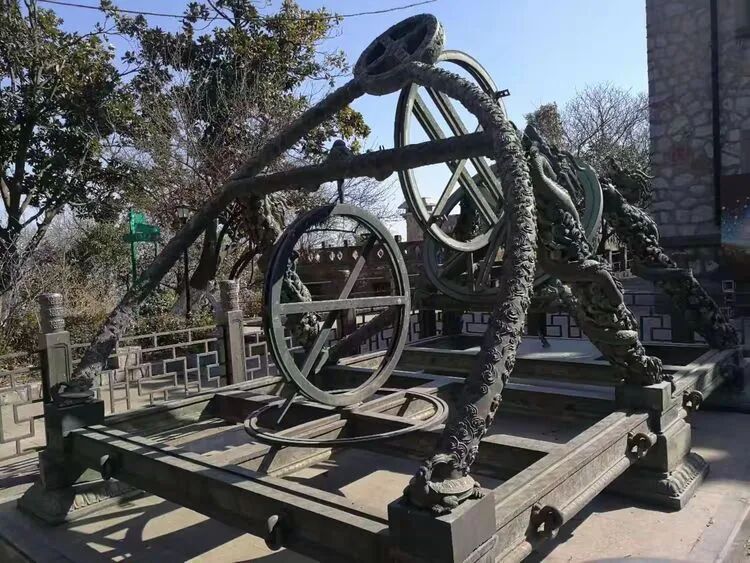 多说几句:浑天象不是观测工具,而是类似现在天球仪般的演示工具,我们在古台见到具有同样功能的有台上的天体仪和台下按文献介绍复制的玲珑仪。