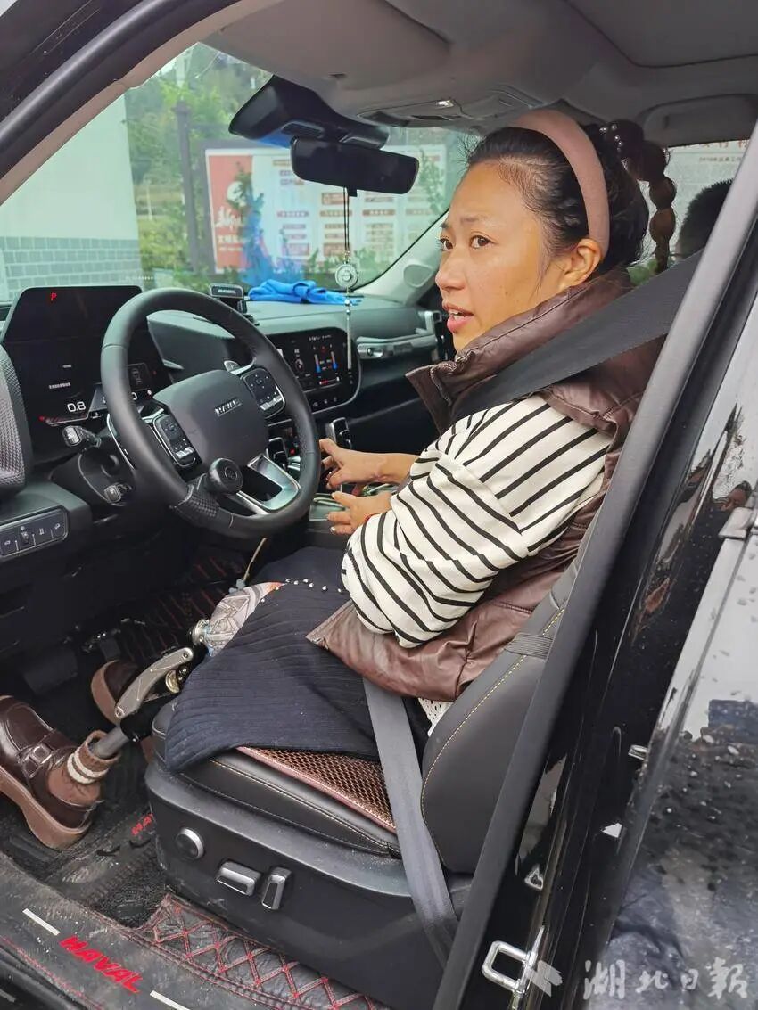 她克服身体障碍,赶往湖北省襄阳市成功考取C5驾照(残疾人驾驶自动挡汽车的专用驾照),姐姐送了她一台按相关规定改装过的汽车,为她通往更广阔的天地增添了动力。
