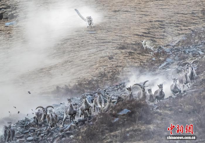 雪豹追捕岩羊。许国安 摄