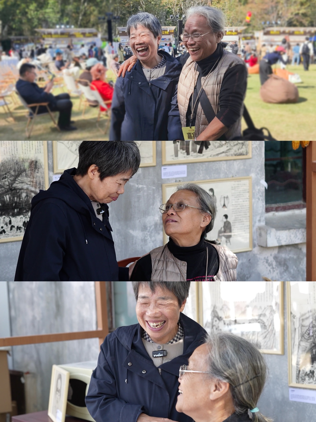 最开心的是,她还和她的同龄网友肖大妹“面基”了。肖大妹来自广西,也是这两年才开始写写画画。两位70岁属羊的奶奶神交已久,见面第一眼就无比激动地抱在了一起。