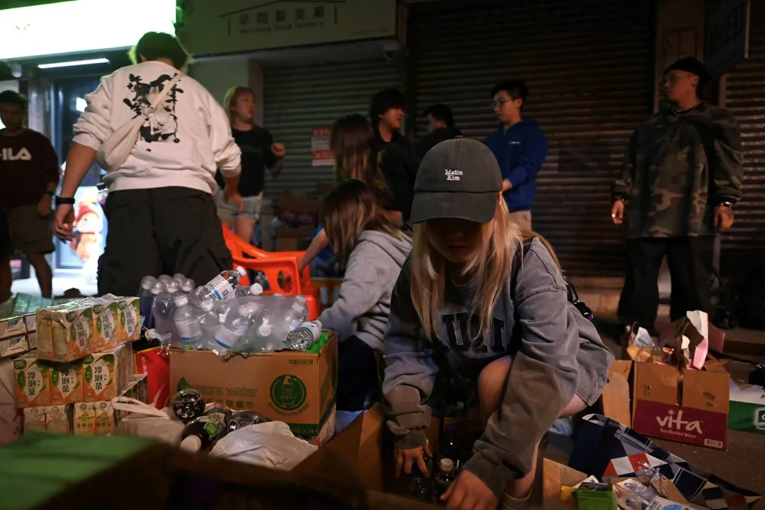 ·香港市民自发组成志愿团体,帮助分发物资。(环球时报)
