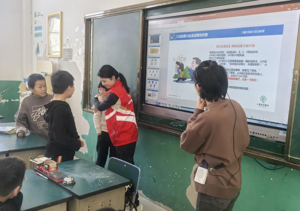 本次公益课程聚焦安全防护、心理成长与未来规划三个重点方向,采用情景模拟、互动游戏、小组讨论等生动形式,营造了积极活泼的课堂氛围。在“防欺凌”课堂中,通过角色扮演模拟冲突场景,同学们学会使用坚定语气拒绝霸凌行为,并掌握向老师和家长求助的有效途径;情绪管理课程中,同学们在志愿者的引导下通过绘画表达情绪,在分享交流中学会理解他人感受、调节自我情绪。在职业启蒙课上,志愿者们结合自身经历,分享了职业故事。随后,同学们围绕不同职业进行自由交流和深入探讨,初步构建起对职业世界的多元认知。