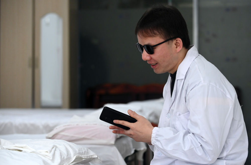 一番苦苦挣扎后,蓝宁选择坚强面对坎坷的人生。“我只是残障,并不是残废,想要自立,必先自强。”后来,在残联部门的关怀下,他参加盲人按摩班培训学习,成为一名盲人保健按摩师。
