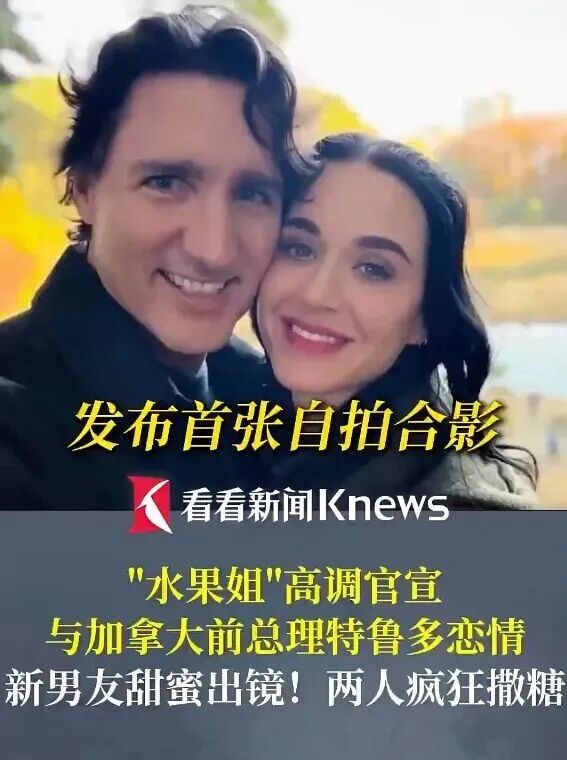 12月7日,据看看新闻消息,12月6日,美国天后级歌手凯蒂·佩里(Katy Perry,中国粉丝称其“水果姐”)和加拿大前总理贾斯汀·特鲁多正式官宣恋情,发布了首张自拍合影。