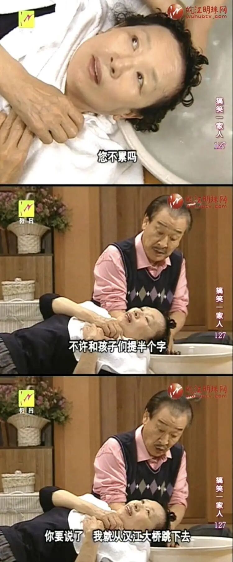 文姬过生日,看到电影《走出非洲》中男主给女主洗头,很是羡慕。顺才虽然一百个不情愿,还是妥协照做,一边洗头一边威胁:“不许和孩子们提半个字,否则我就从汉江大桥跳下去。”