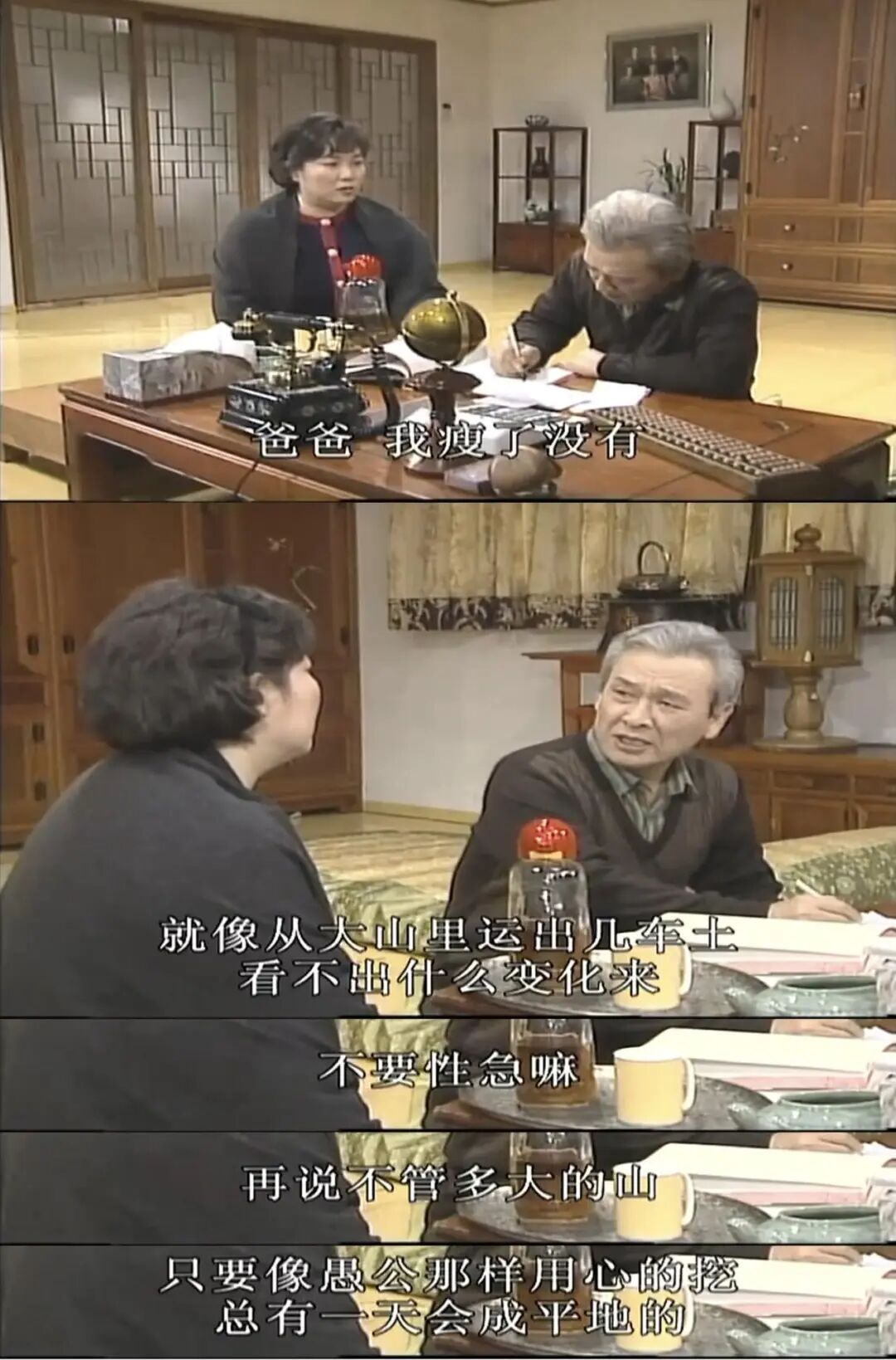 虽然“登”味儿十足,但他并不让人讨厌,甚至有点可爱。比如当小女儿福姬投身减肥,向爸爸询问效果时,他如此回答: