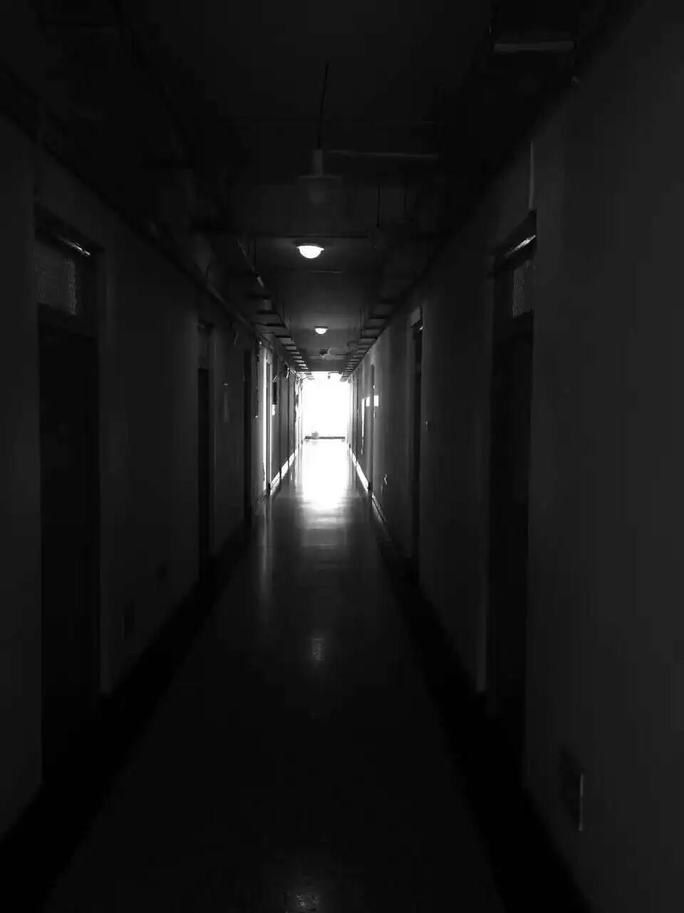▲2016年1月期末考试后,小月在夜晚拍了一张宿舍楼道的照片。她觉得这象征着自己的内心世界,被黑暗充斥,不知道什么时候才能走到光明的地方。受访者供图