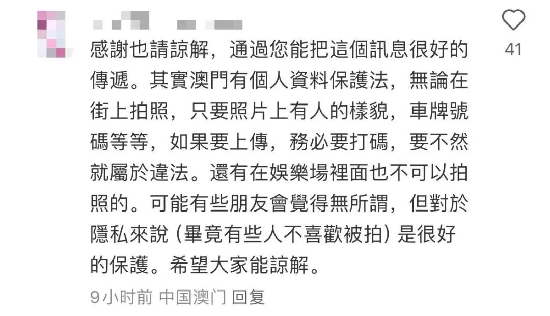 有澳门网友在评论区“科普”称,澳门有相关法律保护个人隐私,所以大家不太习惯在路上被拍。也有不少网友称,被李现科普到,涨知识了。