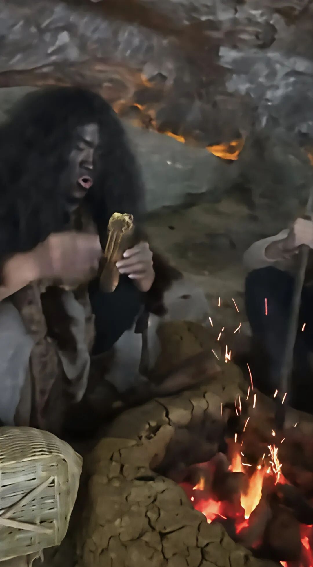 达州巴山大峡谷里“野人”正在烤玉米。(受访者供图)