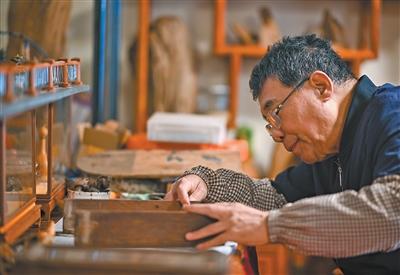 12月9日,商户在修理木制小家具。 新华社记者张铖摄