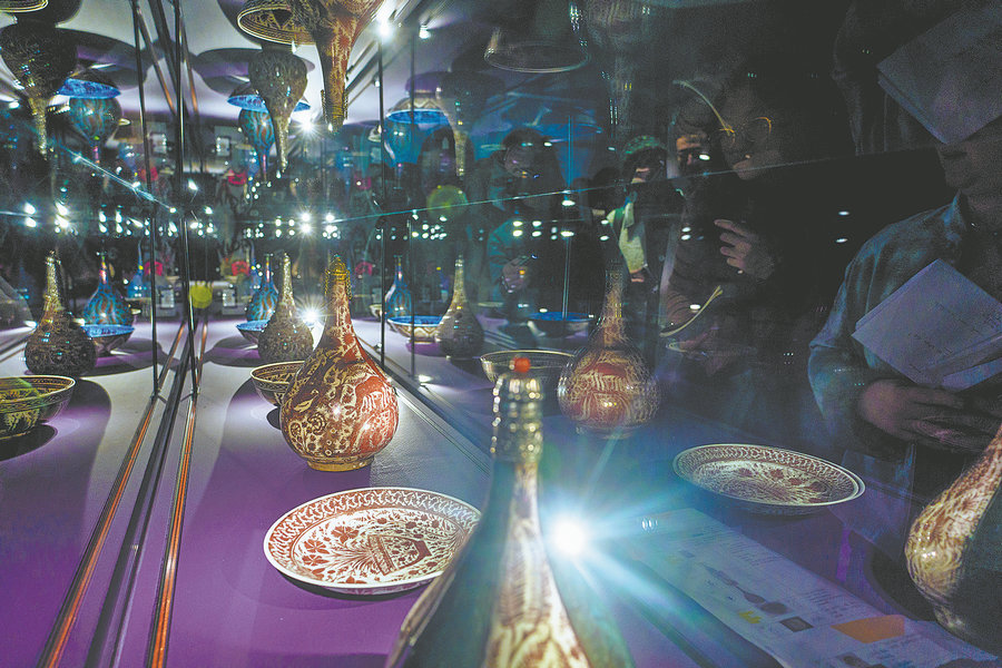At the Museum of Art Pudong in Shanghai, The Wonder of Patterns: Masterpieces from India, Iran and the Ottoman World from the Musee du Louvre opens from Saturday to May 6, presents more than 300 artifacts encompassing a wide range of mediums including ceramics, jewelry, jade, glass, carpets, painting and sculpture spanning the 16th to the 19th centuries. [Photo provided to China Daily]