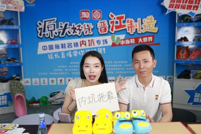 Local authorities in Neikeng town of Jinjiang, Fujian province, promote the sale of slippers through e-commerce platforms. [Photo provided to chinadaily.com.cn]