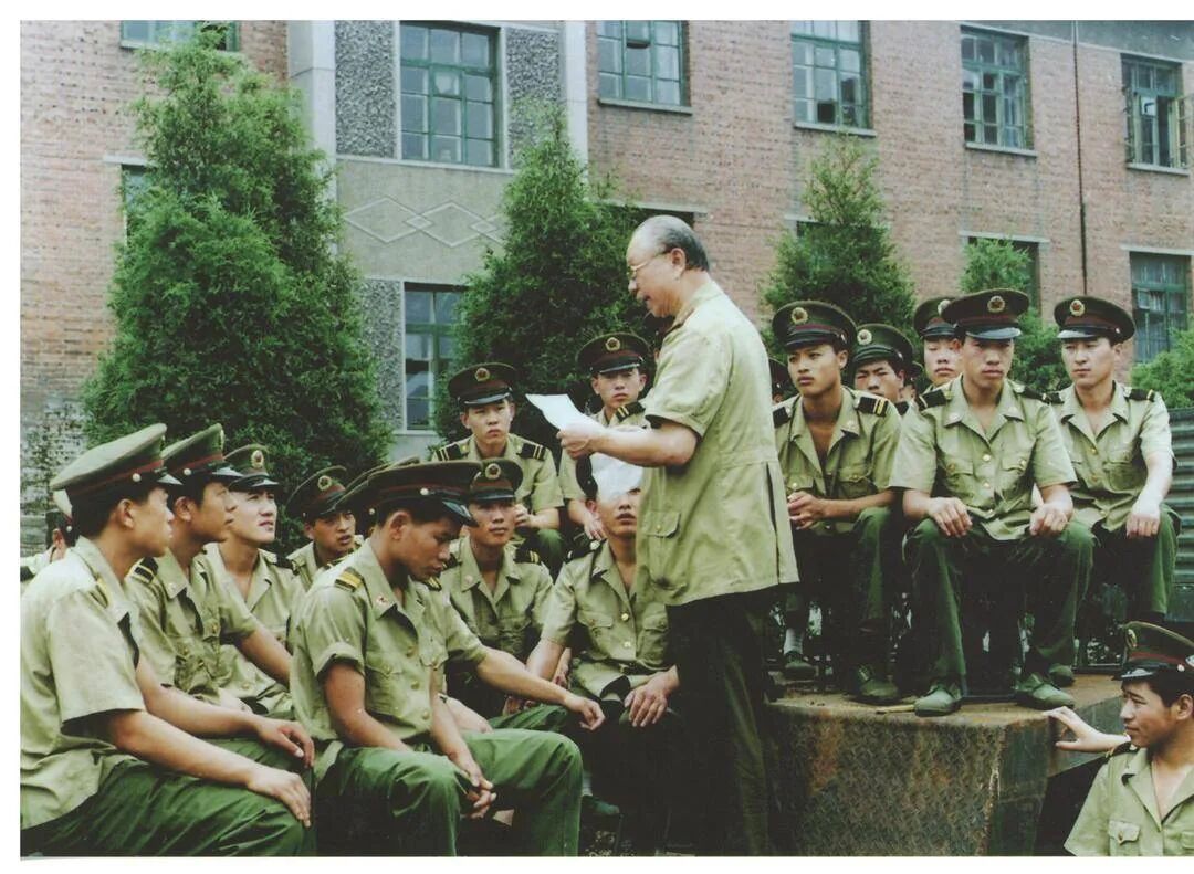 二十世纪九十年代,铁源到连队教战士们唱歌。