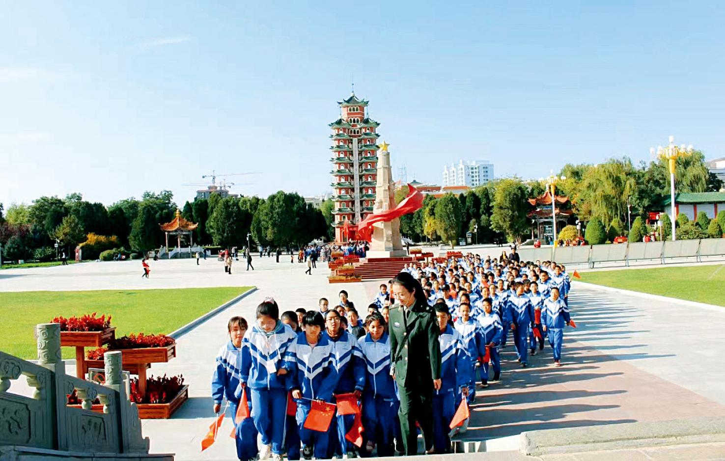 2021年,牛娜娜带领学生参观红军会宁会师旧址。(受访者供图)