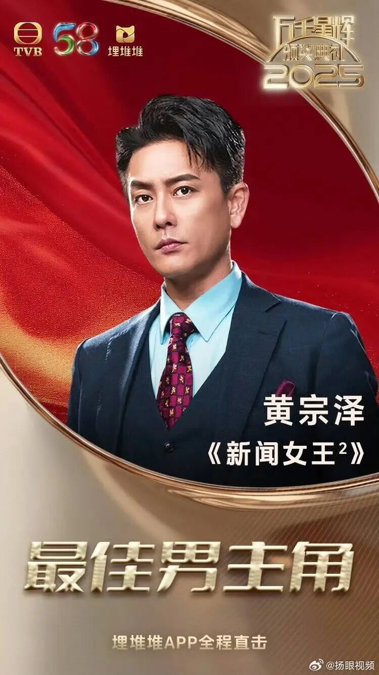 2026年1月4日晚,TVB万千星辉颁奖典礼2025在澳门落幕,佘诗曼凭借《新闻女王2》中文慧心一角,拿下“最佳女主角”奖,也成为TVB有史以来第一个四封“视后”的女演员。黄宗泽凭借《新闻女王2》中古肇华一角,拿下“最佳男主角”奖,这也是黄宗泽第一次拿下TVB视帝殊荣。现场黄宗泽忍不住落泪。同时,曾志伟卸任TVB总经理引全场致敬。