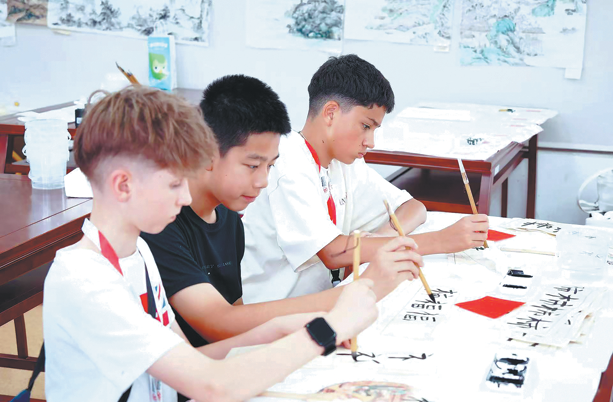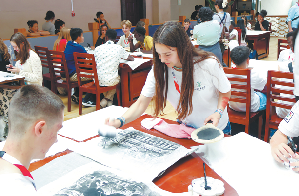 The Mandarin Excellence Program's students immerse in Chinese stone rubbing and calligraphy at Sichuan Normal University in Southwest China's Sichuan province in July. CHINA DAILY