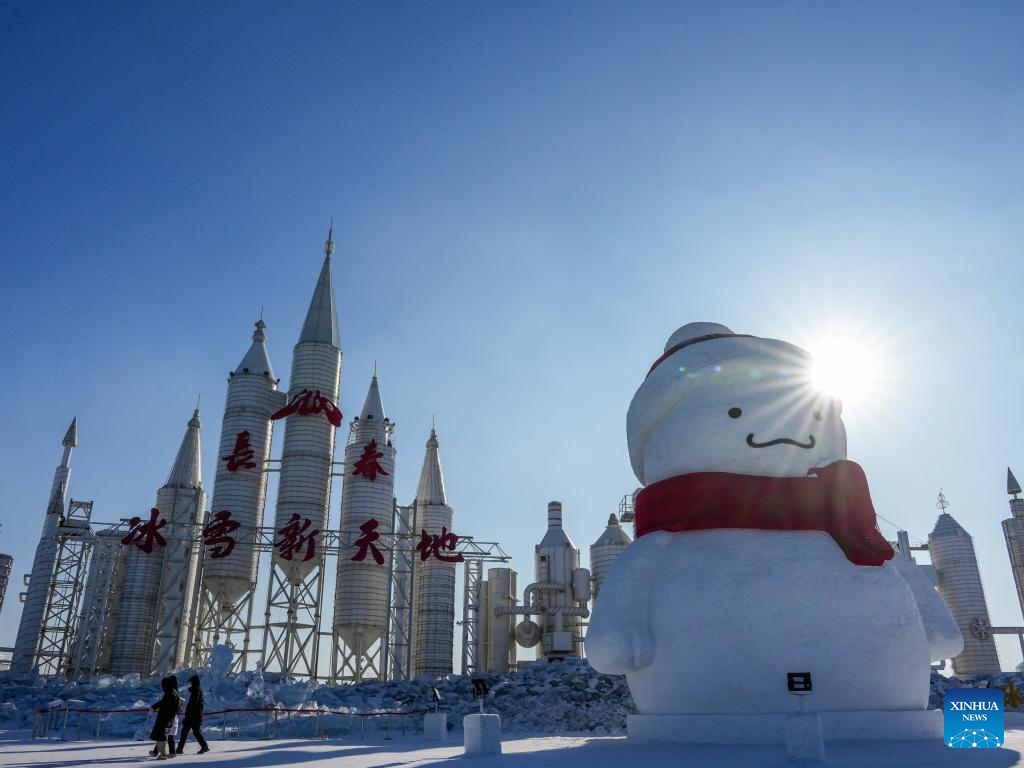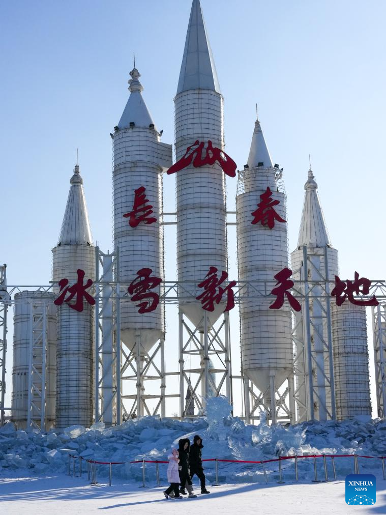Tourists visit an ice and snow scenic area in Changchun, northeast China's Jilin Province, Jan. 5, 2026. Changchun has set up a variety of distinctive ice and snow landscapes throughout urban areas this winter to lure tourists and encourage consumption. (Xinhua/Zhang Nan)