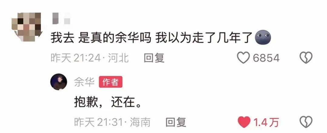 比如有网友留言道:“是真的余华吗?我以为走了几年了。”余华回复道:“抱歉,还在。”