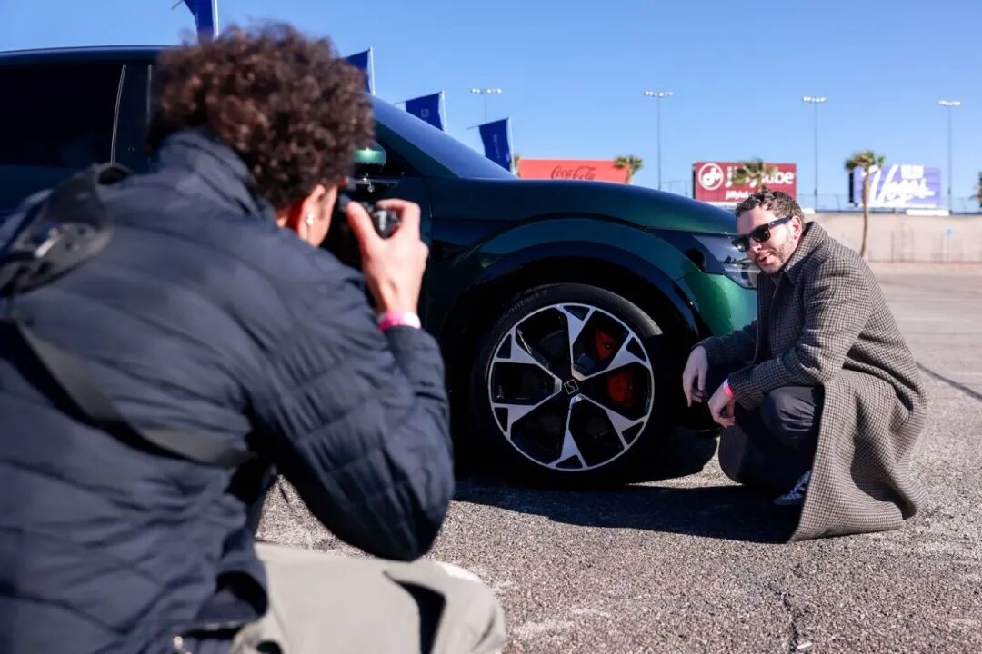 ·CES期间,海外客户试驾极氪汽车,并在车前留影。