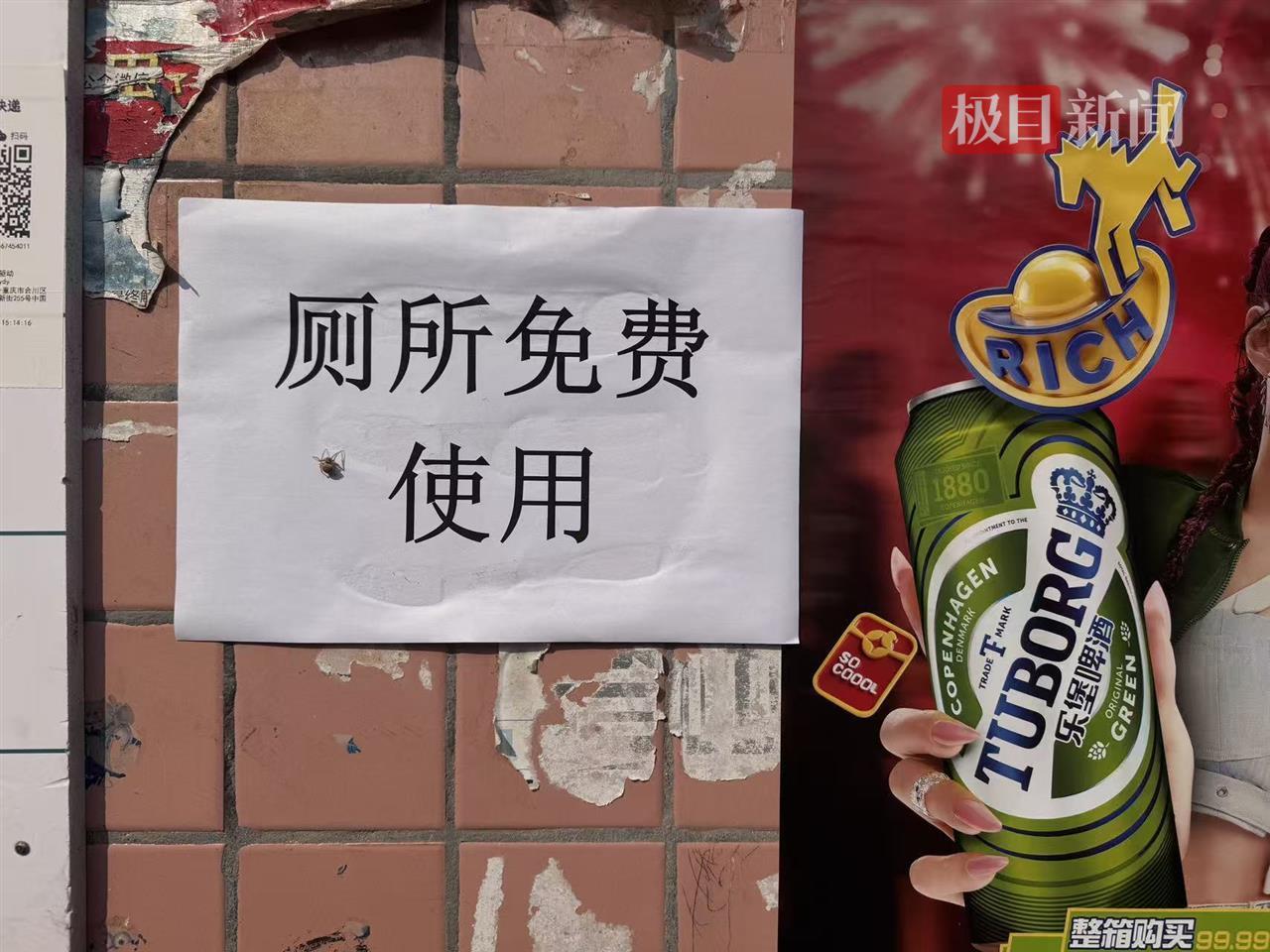 1月13日,小卖部门口贴上了“厕所免费使用”纸张(极目新闻记者 邓波 摄)