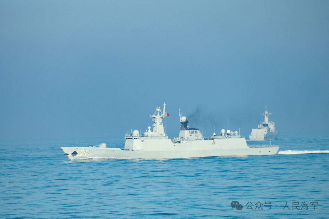 ▲滨州舰与宿州舰编队航行 李依阳 摄