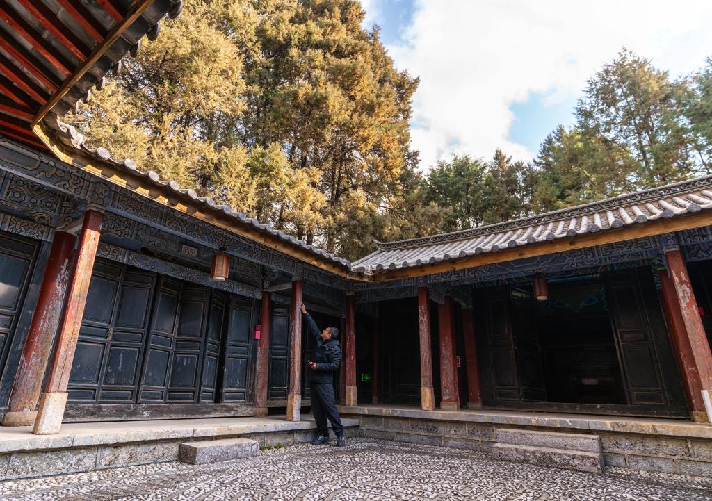 每天傍晚,游客散去,杨志坚总会再次巡视各个院落。夕阳透过古树的枝叶,洒在殿宇和壁画上,诉说着时间的故事。杨志坚最挂念的是在退休前完成所有白沙壁画的修复工作。“我在这里,守的不仅是壁画,”杨志坚说,“更是几百年来各民族在这里相遇、交融的历史。”
