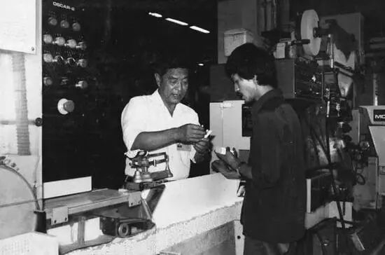 ·上世纪80年代,褚时健(左)在卷烟车间。(新浪财经)