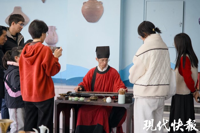 在汉服活动中,洑森涛有时也会穿插古琴相关环节。“比如有次活动现场,我弹奏了《神人畅》,吸引很多人过来询问这是什么乐器,并夸赞弹奏得好听。”