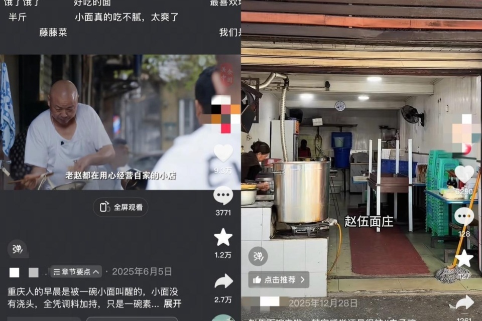 社交媒体上关于赵伍面馆的探店视频(央广网发 来源于网络)